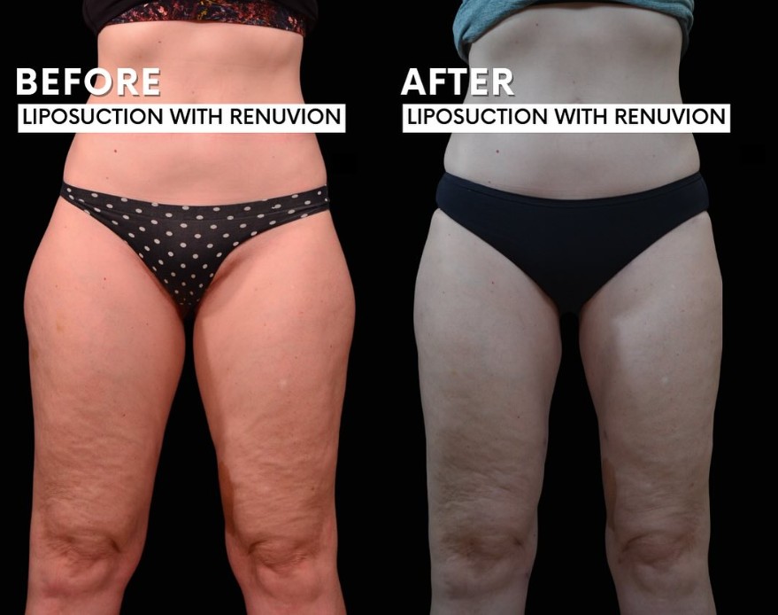 Renuvion plasma energy is often combined to contract collagen and tighten skin from within.