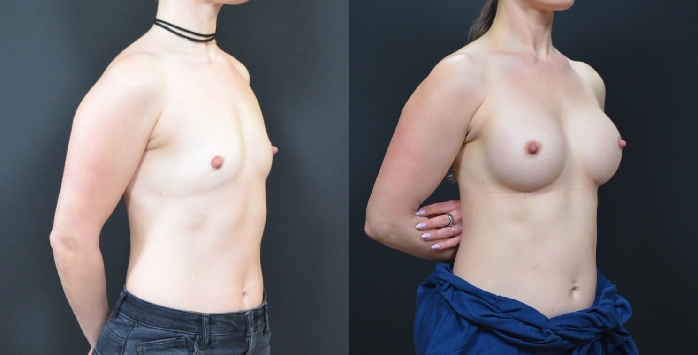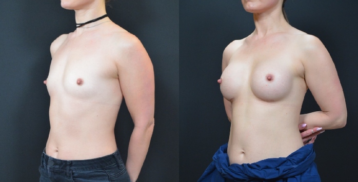 This is a 40-year old mother of 2 who wanted to balance her shape with breast augmentation with natural looking results . She is seen 3 months after a breast augmentation.