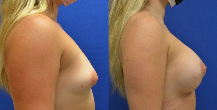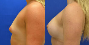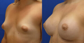 This patient has a tuberous breast deformity—Mentor Moderate plus 325 cc subfascial – hybrid augmentation with fat transfer for shaping.