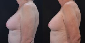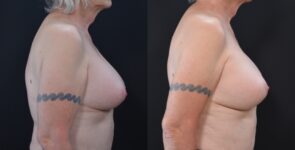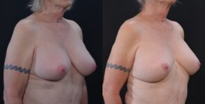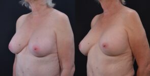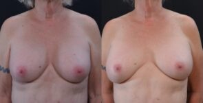 This patient treated with breast implant removal, replacement to smaller implants and correction of lateral malposition.