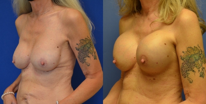 This patient presents with breast implant rupture and capsular contracture of 30 year old implants. She underwent implant removal, capsulectomy, implant replacement with 275 cc moderate plus profile implants with Galaflex mesh for internal bra and breast lift.