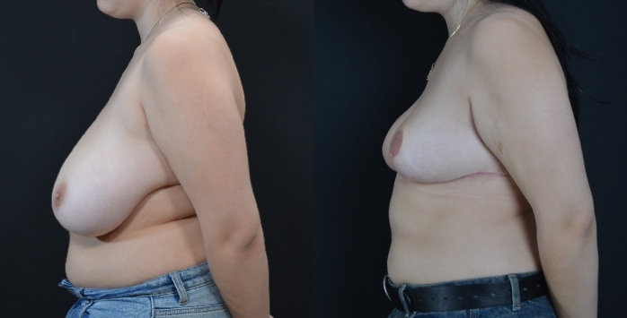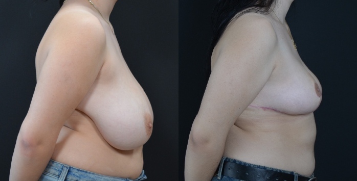 This patient presents with back, neck, and shoulder pain due to large breasts. Underwent bilateral breast reduction with anchor incision