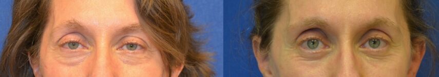 This patient was treated with lower eyelid lift with removal of excess fat, fat grafting and chemical peel. No skin excision performed.
