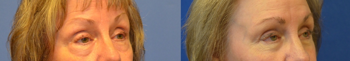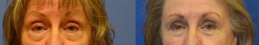 This patient was treated with a lower eyelid lift with removal of excess fat and skin, canthopexy, and facial fat grafting.
