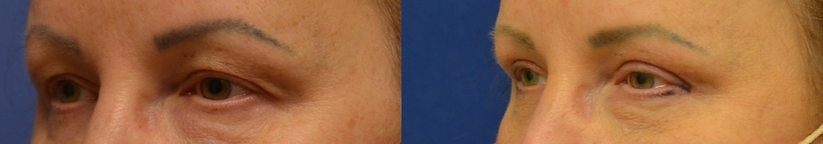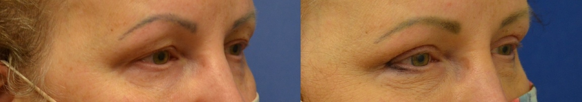 This patient was treated with upper eyelid lift (upper blepharoplasty) in the office under local anesthesia.