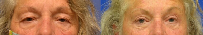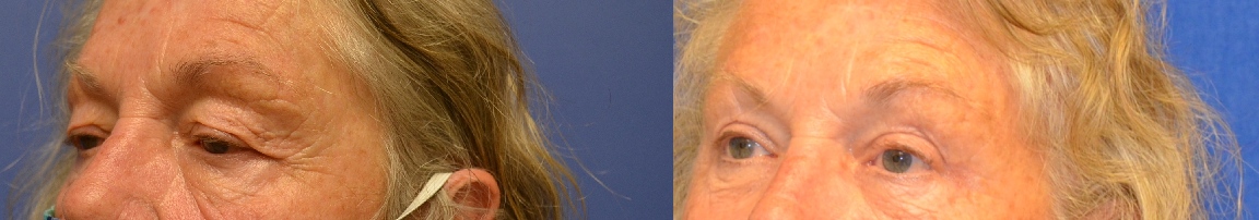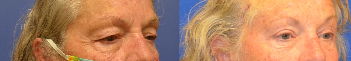 This patient was treated with upper eyelid lift (blepharoplasty) and temporal brow lift.
