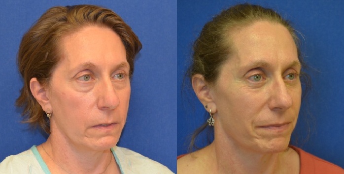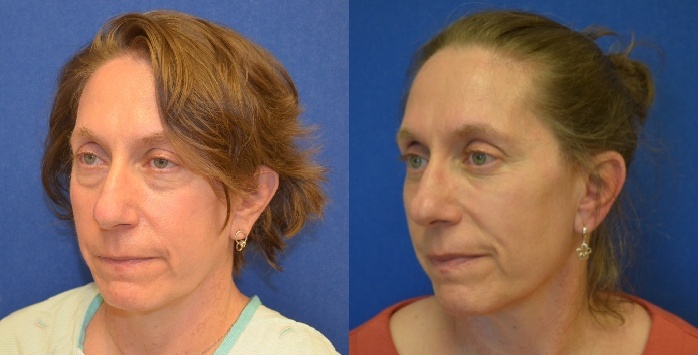 This patient was treated with lower eyelid lift with removal of excess fat, fat grafting and chemical peel. No skin excision performed.