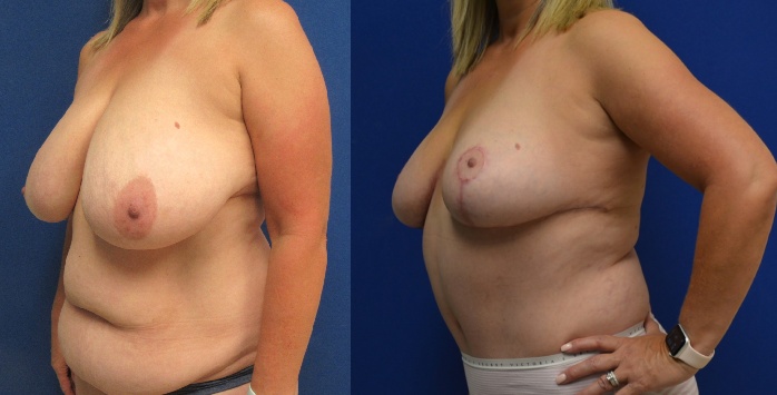 This mother of 2 children, via c-section, was treated with breast reduction and abdominoplasty with liposuction.