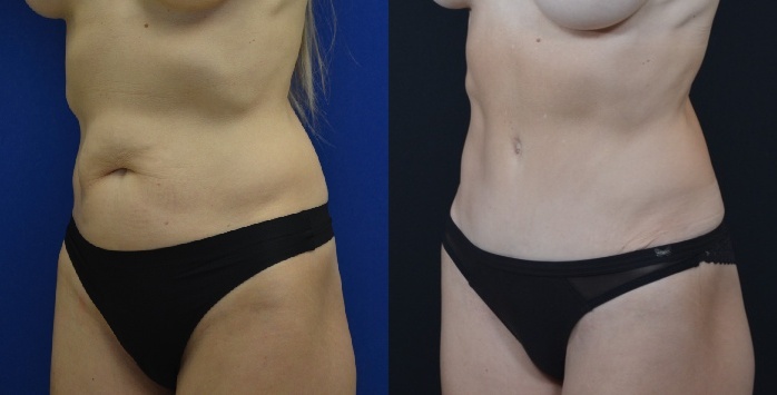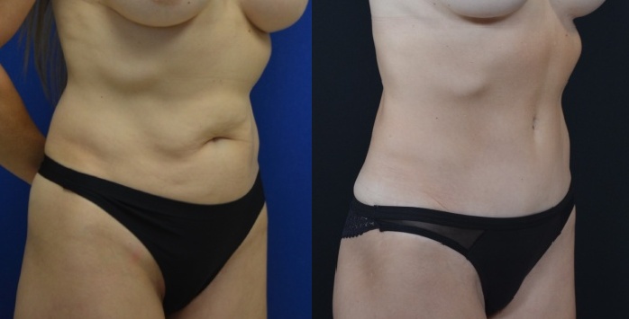 This patient presented for abdominal contour correction and underwent abdominoplasty, flank liposuction, and muscle repair.