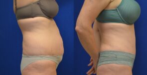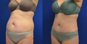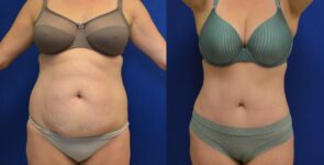 This mother of 2, who presented for tummy tuck and liposuction at the same time as a hysterectomy. She underwent abdominoplasty, 360 liposuction, and muscle repair.