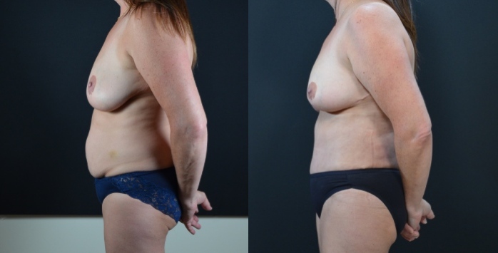 This mother of 4, who desired abdominoplasty and a breast lift. She underwent a tummy tuck, liposuction of flanks, and a re-do breast reduction