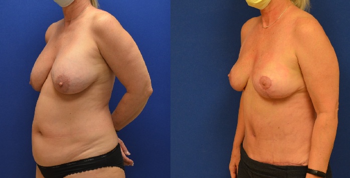 This patient was treated with a tummy tuck, liposuction, breast implant removal, lift with the use of Galaflex internal bra, and fat grafting to the breasts.