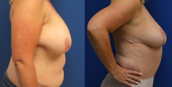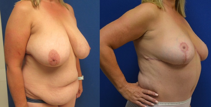 This mother of 2 children, via c-section, was treated with breast reduction and abdominoplasty with liposuction.